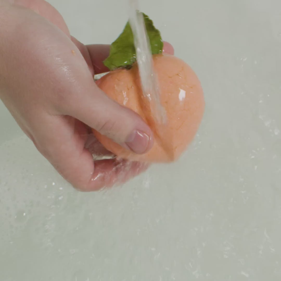 Sodium Bicarbonate, Potassium Bitartrate (vinski kamen), Sodium Laureth Sulfate, Theobroma Cacao Seed Butter (fair trade organski kakao maslac), Lauryl Betaine, Zea Mays Starch (kukuruzni škrob), Parfum, Citrus Paradisi Peel Oil (ulje grejpa), Artemisia Pallens Herb Oil (ulje davane), Canarium Commune Gum Oil (ulje elemija), Tagetes Minuta Flower Oil (ulje kadifice), Prunus Persica Fruit (svježa breskva), Butyrospermum Parkii Butter (fair trade shea maslac), Cyamopsis Tetragonoloba Gum (guar guma), Titanium Dioxide, Talc (talk), Laureth-4, Synthetic Fluorphlogopite, Tin Oxide, Geraniol, *Limonene, *Linalool, CI 77491, Cl 19140, CI 45410:1, CI 15985:1, CI 19140:1, CI 45410, CI 17200, CI 45410:2, CI 15850:1, Citrus Hystrix (list kvrgave limete)